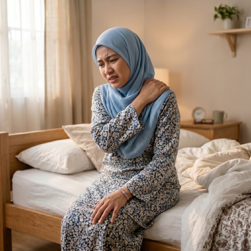 Bangun tidur masih rasa sengal, berat, & otot tegang.
