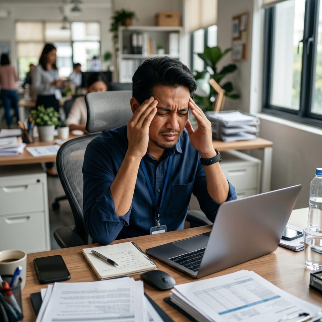 Stres melampau di tempat kerja hingga mengganggu fokus anda.